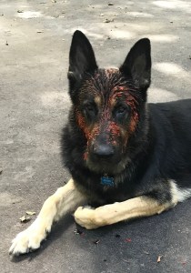 After multiple treatments, Moses still smelled like skunk around his eyes and muzzle. I couldn’t put any of the harsher treatments near his eyes, so we went with the old-
