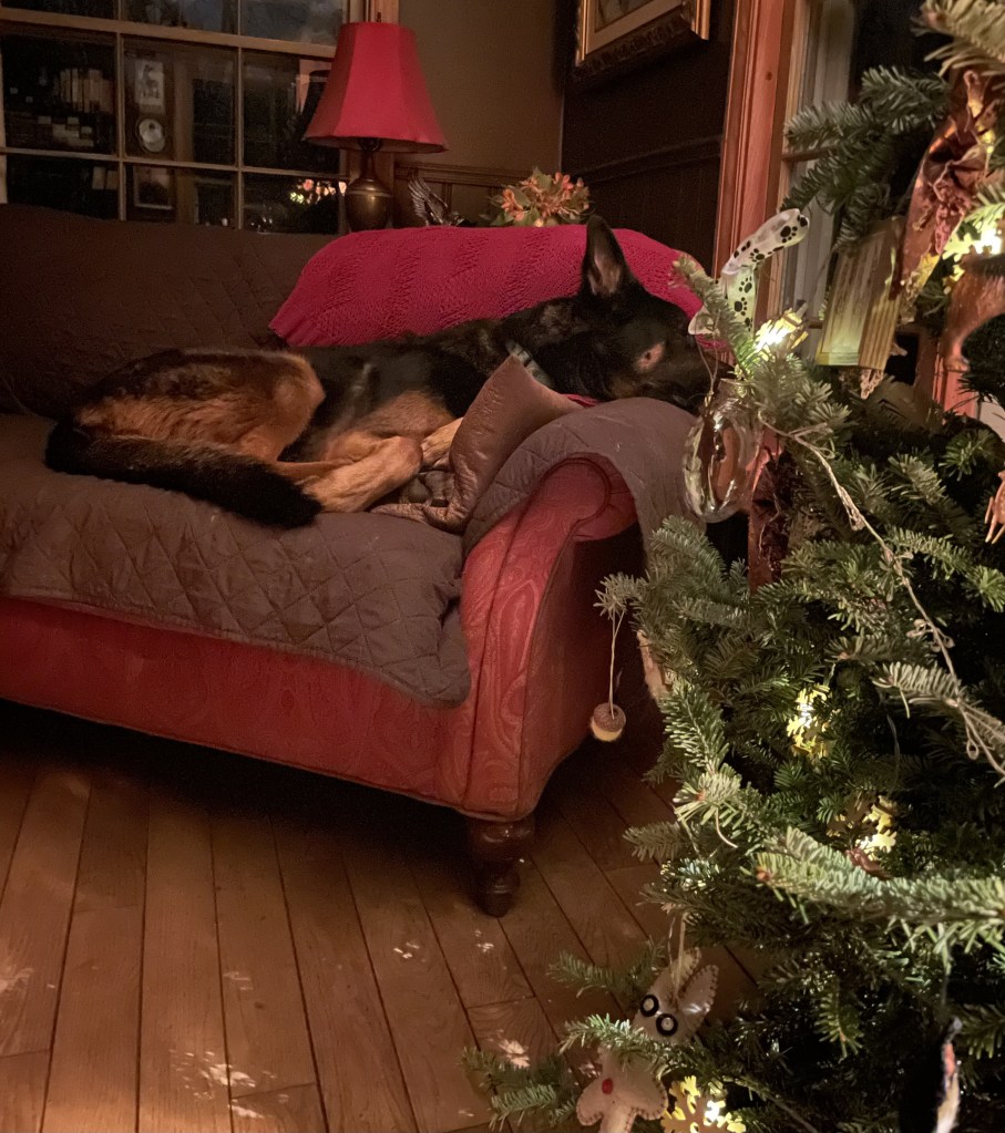 And now for your gratuitous dog photo. Here’s my faithful Auggie, keeping me company on a sleepless night.
