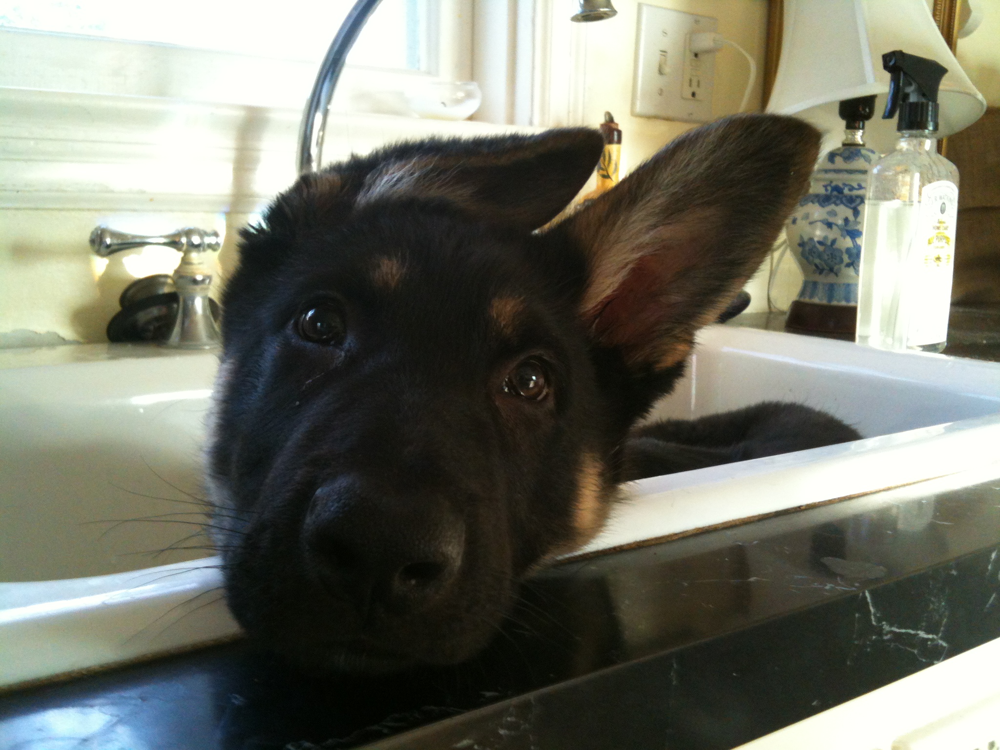 Since I was a little girl, I have wanted a German Shepherd. I admire them for their bravery and intelligence, their dignity and loyalty. And I think they are beautiful. But the time had never been right to have a dog who would demand so much training and so much attention. With the passing of Reggie I realized that this was my last chance. In the span of another dog’s life I would probably be too old to have such a powerful dog. And maybe as much as anything, I couldn’t bear having another Golden.