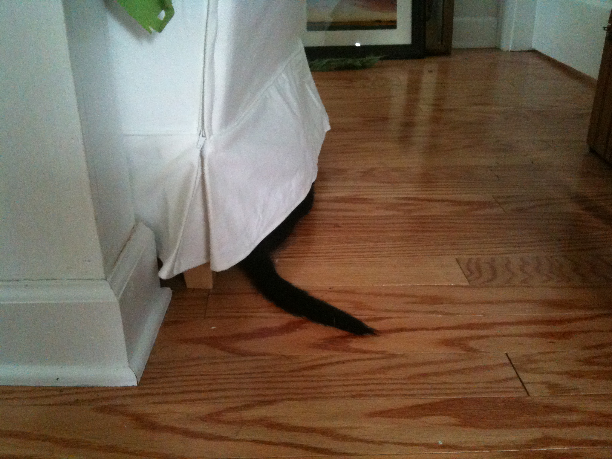 He’s a smart puppy. Today he showed admirable, almost supernatural restraint in resisting the temptation to bite Pete’s tail as it hit him repeatedly in the face. You could see his eyes sparkling at the prospect. Pete snarls, though he is just barely tolerant, like a teenager rolling his eyes. But little by little, Moses creeps up on him. Sometimes with a paw on Pete’s paw, sometimes copying what Pete is doing, sometimes waiting until Pete is asleep to snuggle up against his back, and sometimes with an insistent puppy bark and a play bow. This morning as we walked, Moses was leaping alongside, trying to bite Pete’s floppy ears. We tell Pete that now is the time to make friends, before Moses changes his mind.